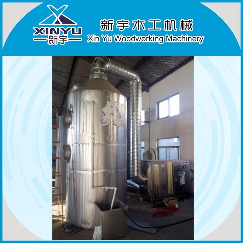 工作原理:帶有粉塵,有害廢氣、煙霧的氣體從吸塵吸氣管道進(jìn)入旋風(fēng)填料噴啉塔,經(jīng)過不銹鋼旋風(fēng)板兩次改變風(fēng)向使氣體在塔內(nèi)來回旋轉(zhuǎn),通過兩種不同的填料層,再經(jīng)過兩次的噴淋,使粉塵和有害氣體,及煙霧的有效的分解稀釋,再通過除霧層除去噴淋所帶來的水霧,利用風(fēng)機(jī)從排風(fēng)管道排除,根據(jù)有害氣體和煙霧的濃度:加上等離子光氧等電子設(shè)備配套使用,這樣處理效果會(huì)更佳。